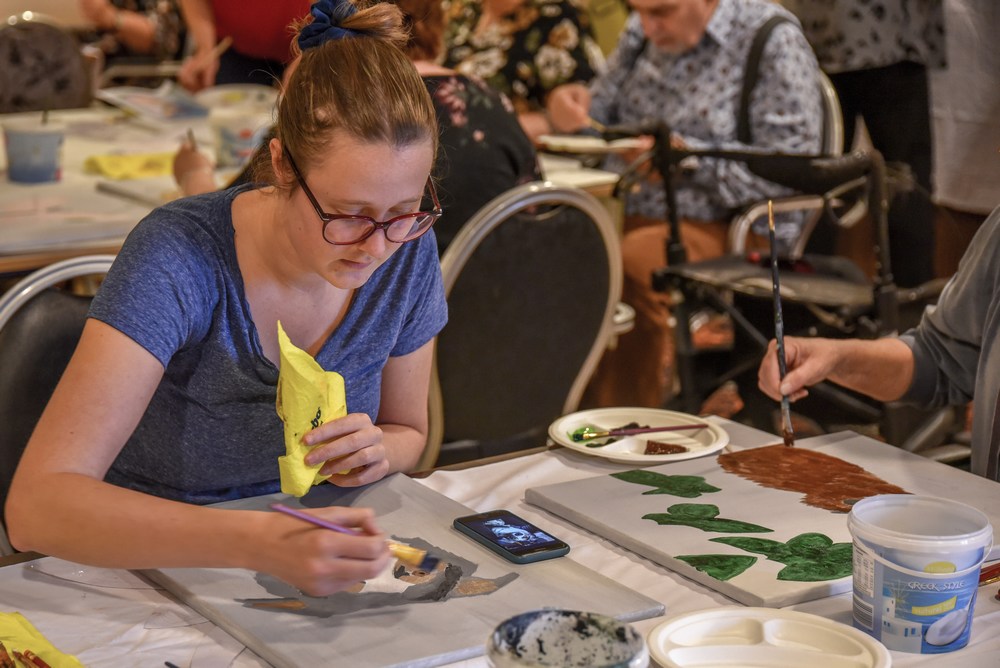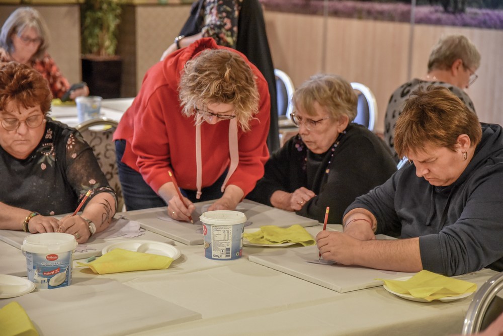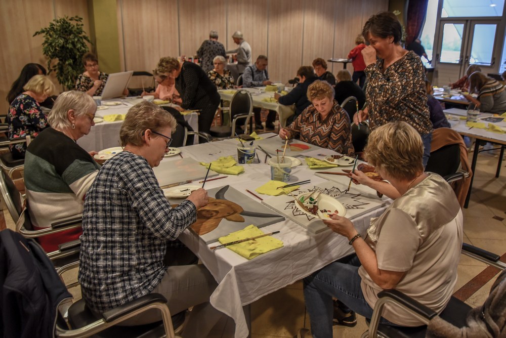De deelnemers aan deze praktijkles leerden tijdens de Week van de Mantelzorg 2022 op 7 november hoe ze in korte tijd zelf een schilderij op doek konden maken. Voor sommigen was het de eerste keer dat ze een schilderij maakten. Anky Hulst leidde de workshop en wist de deelnemers dusdanig te motiveren dat iedere deelnemer na afloop met een zelfgemaakt schilderij naar huis ging.