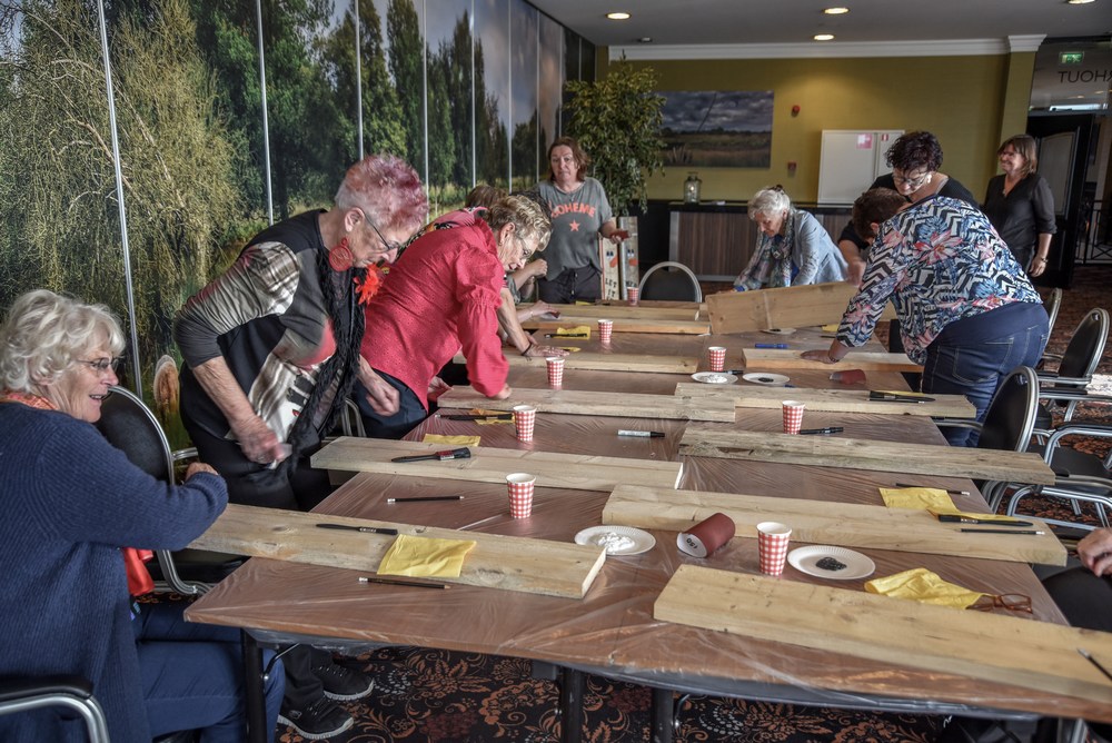 Jetje van der Zwaag en Hilda Hofstede wisten alles in goede banen te leiden en dat zorgde ervoor dat iedere deelnemer met een mooi paneel naar huis ging. Zij kunnen deze binnen of buiten een mooie plek geven.