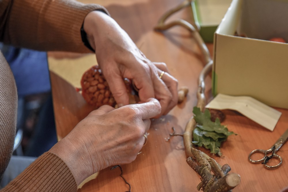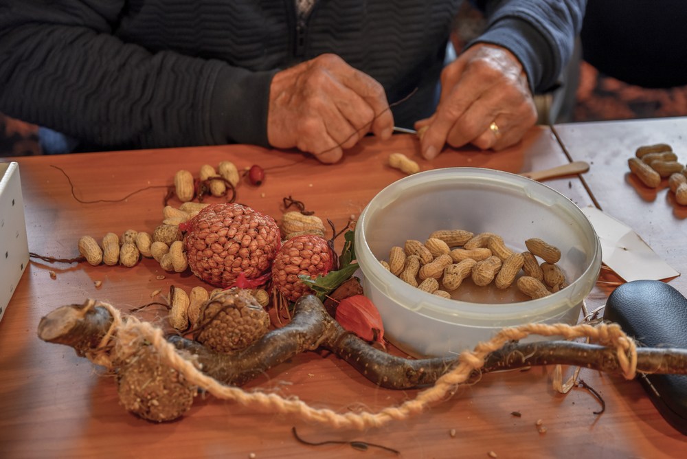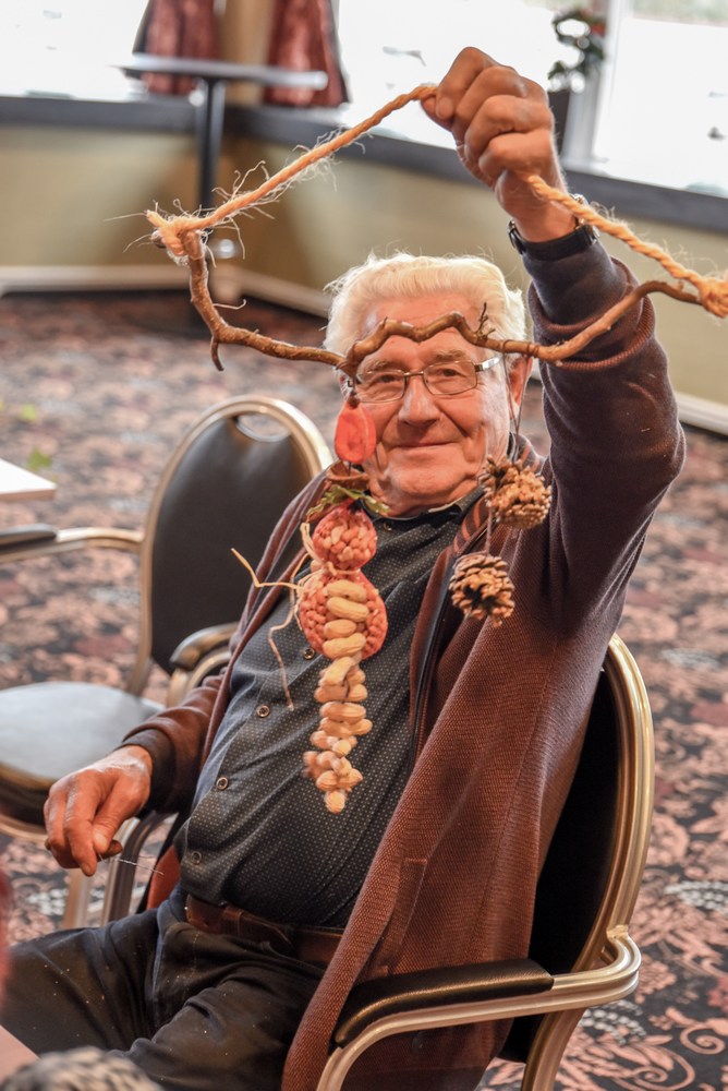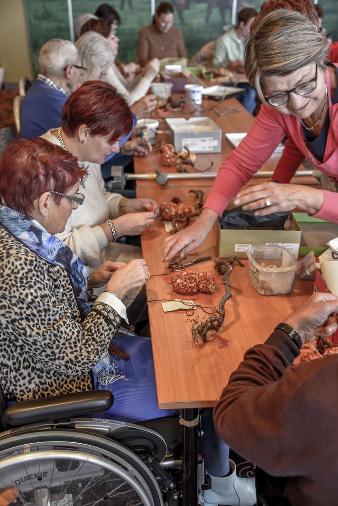 Met naald en draad, pinda’s, dennenappels, takken en touw lukte het ze allemaal om een mooie creatie te maken. Het resultaat van deze workshop heeft vast een mooie plek in de tuin of op het balkon gevonden.