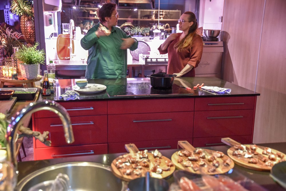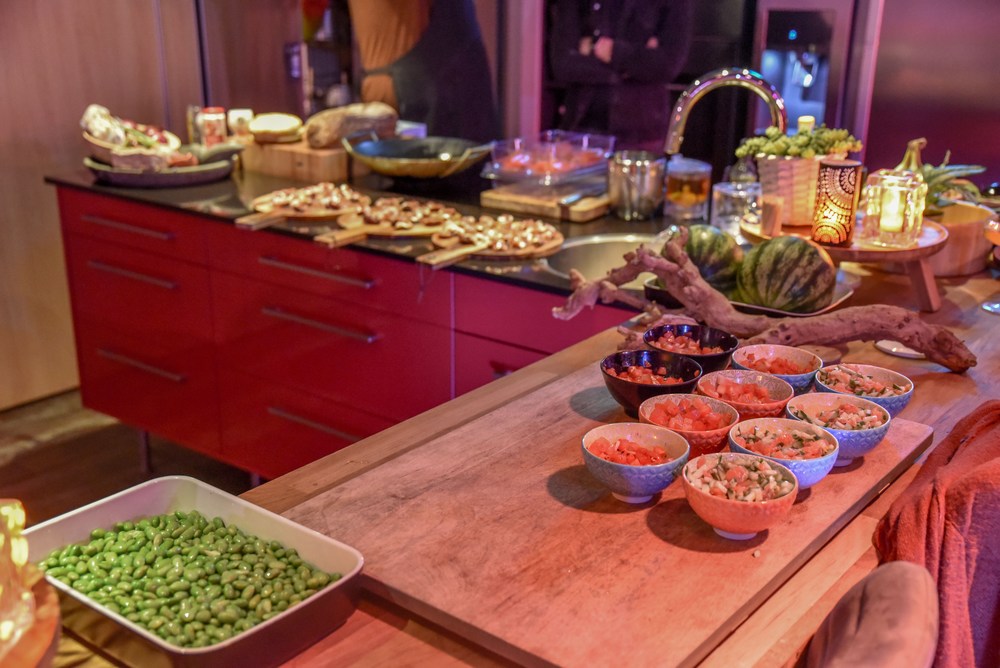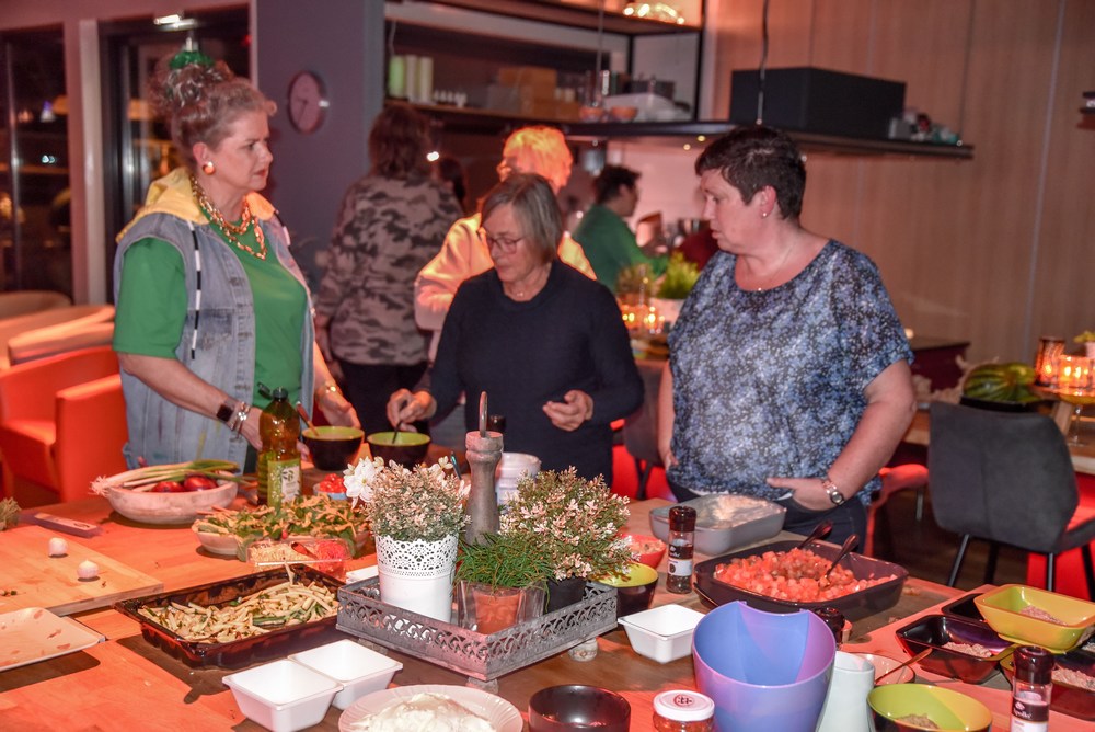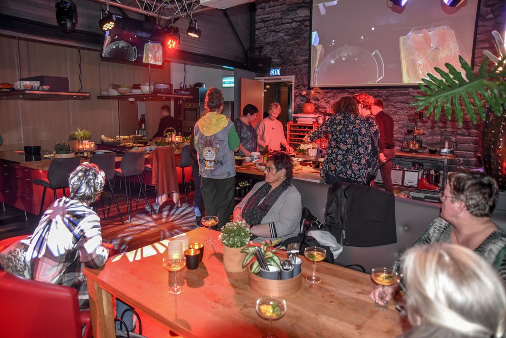 Het was sfeervol en naast het maken van de hapjes en de cocktails was er ruim voldoende tijd om gezellig met elkaar te kletsen. Na afloop was het natuurlijk tijd om te genieten van de zelfgemaakte hapjes en drankjes.