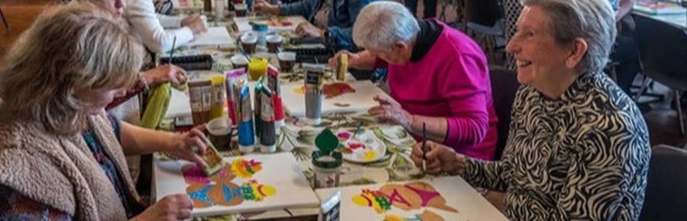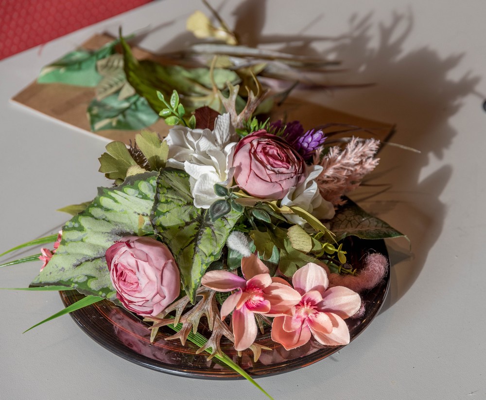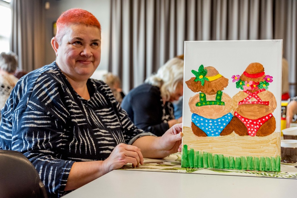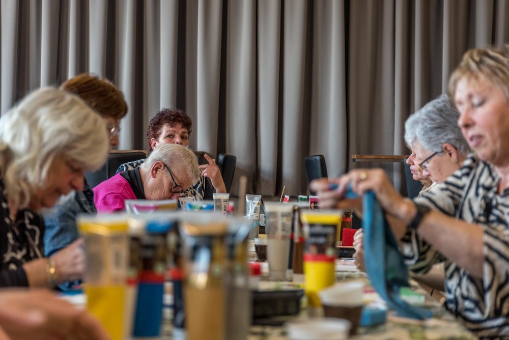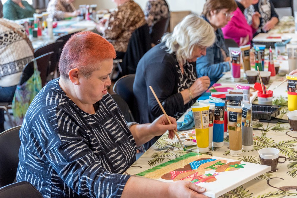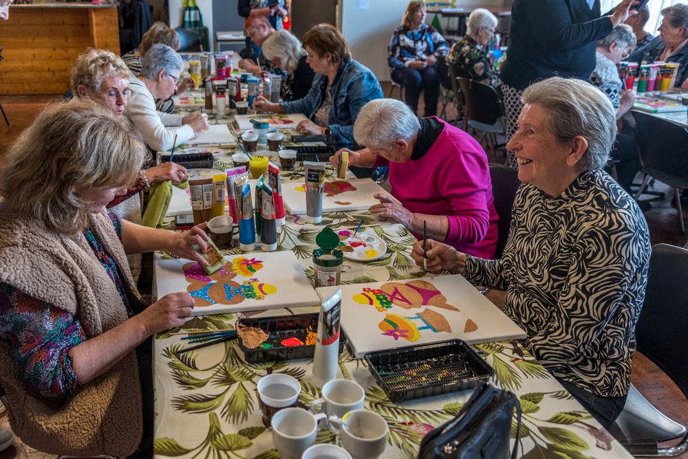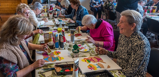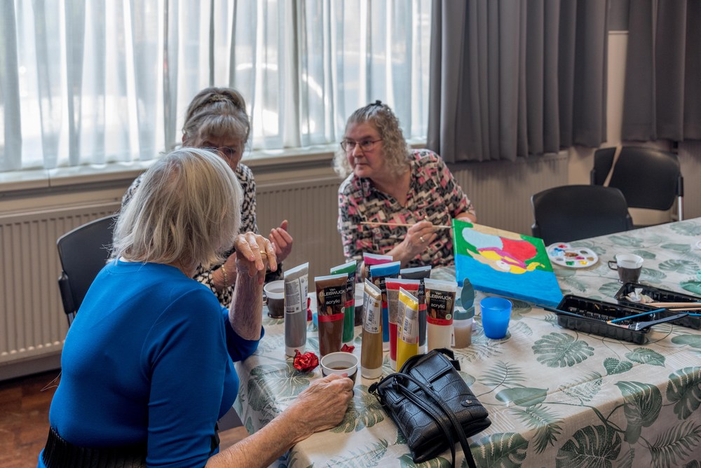 De belangstelling voor deze ochtend was groot, de ene groep begon met het maken van een prachtig bloemstuk en de andere groep ging aan de slag met het maken van een schilderij met acrylverf. Halverwege de ochtend werd er gewisseld zodat iedere deelnemer met twee creaties naar huis ging.