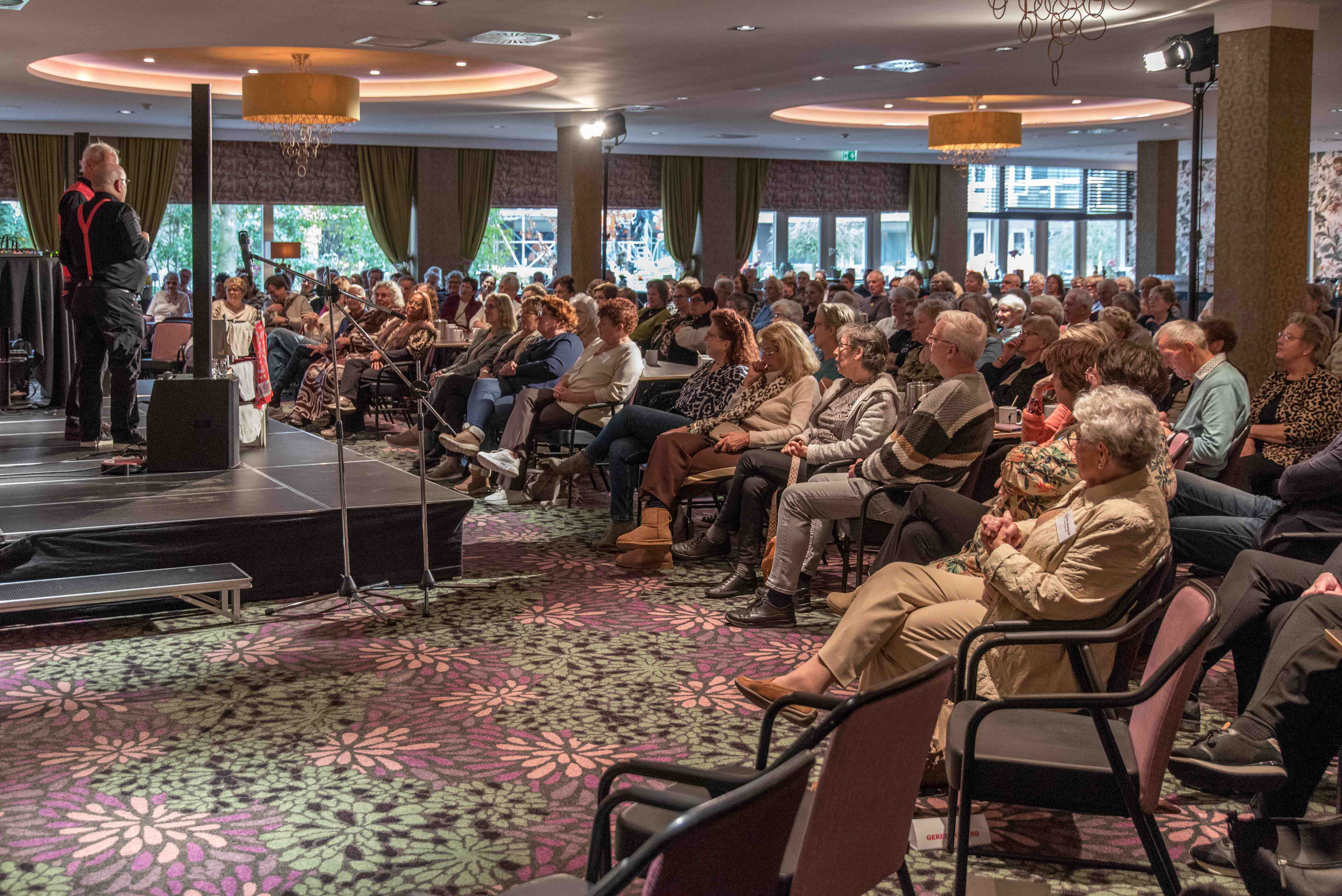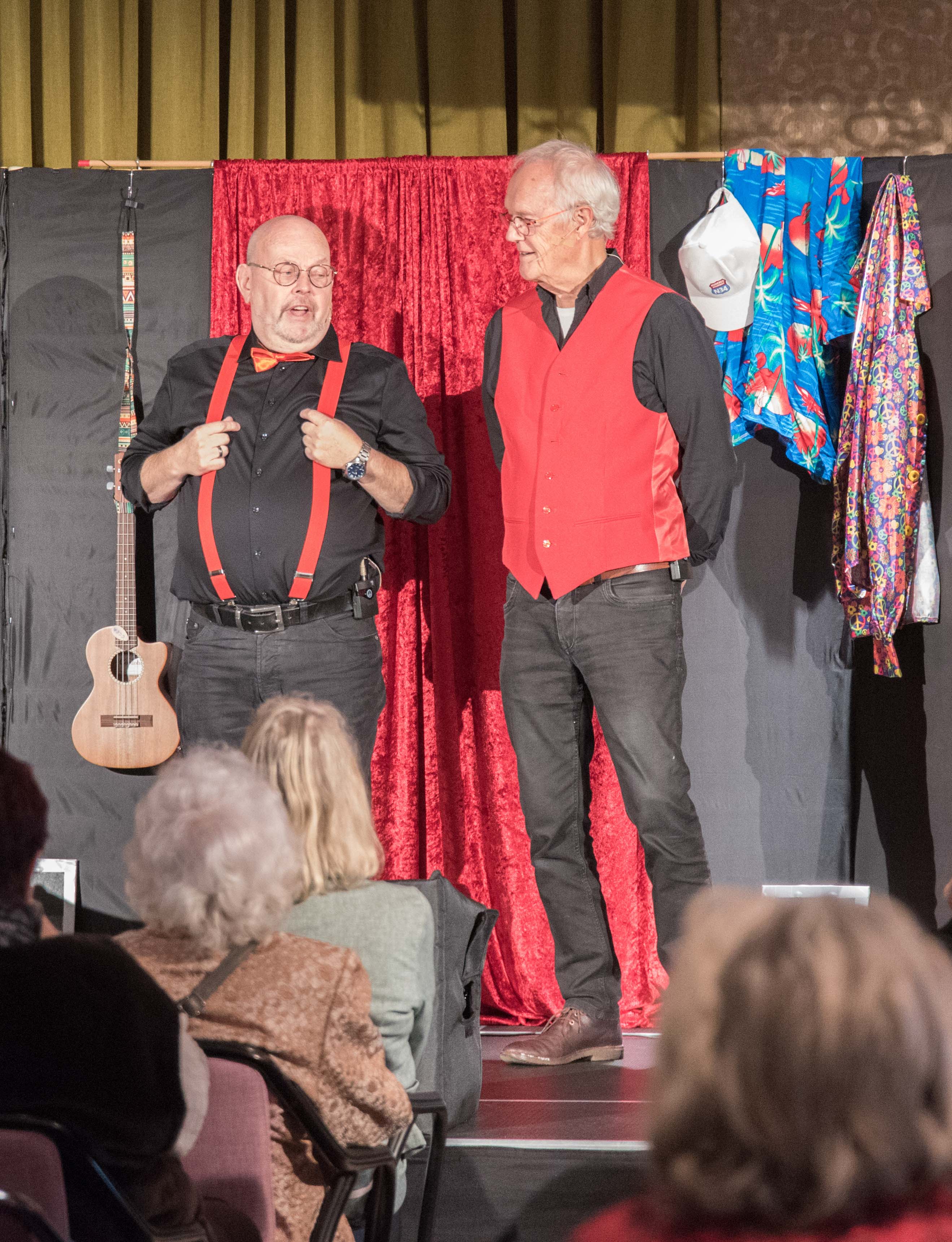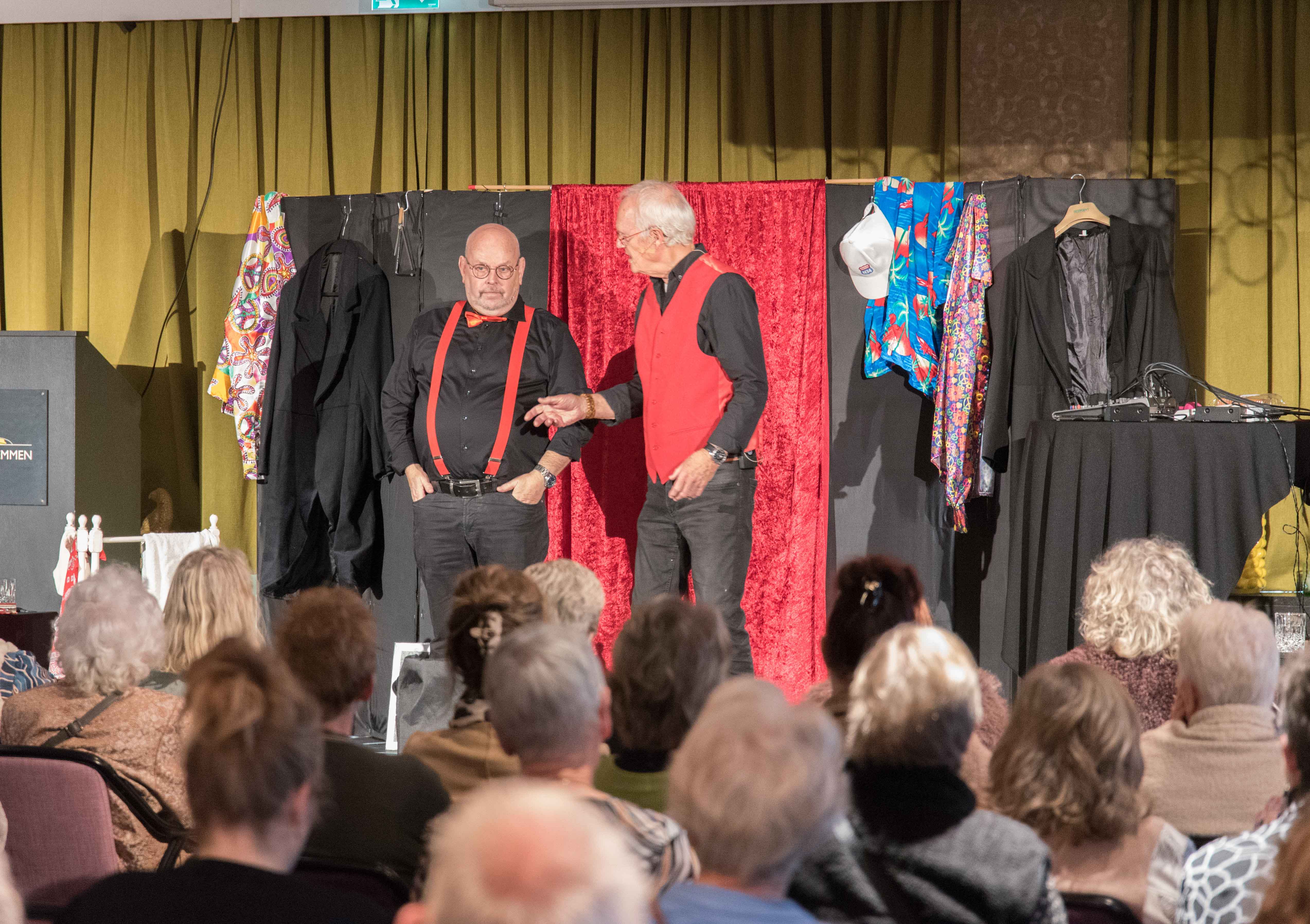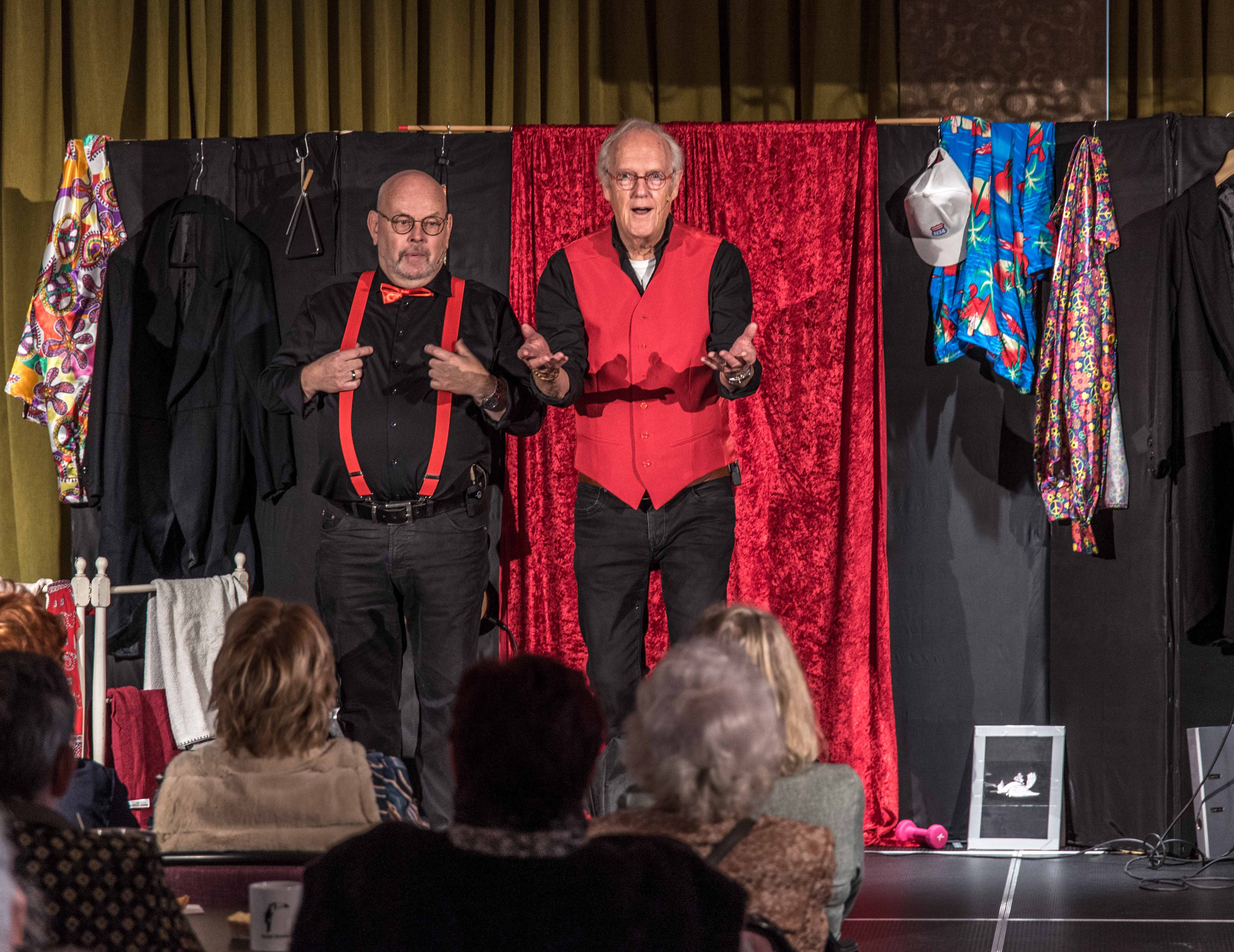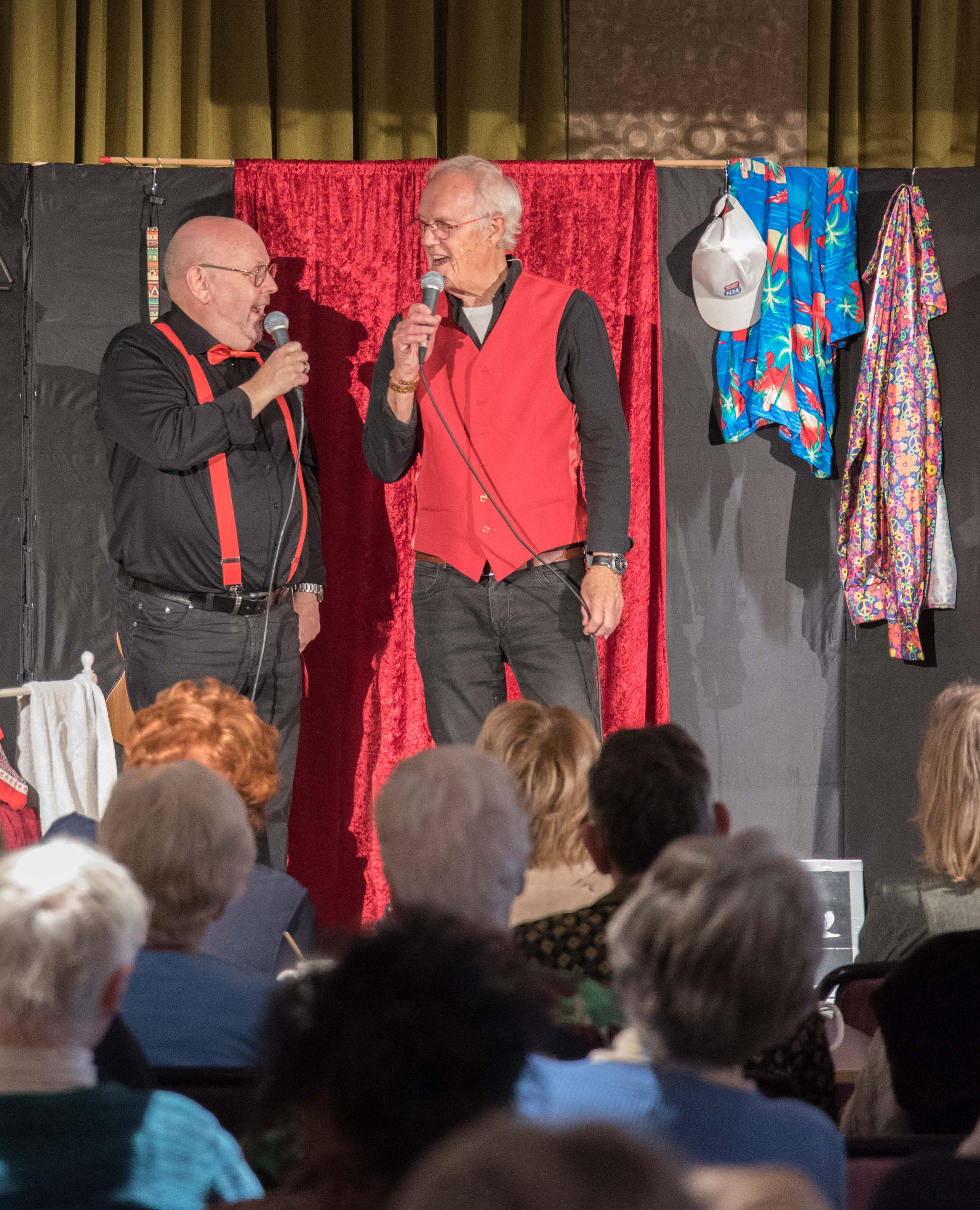 Na de officiële opening was het tijd voor het optreden van het Emmens kleinkunstduo 2 VOUDT met hun nieuwste programma. Aan de reacties tijdens het optreden kon je afleiden dat hun humor zeer in de smaak viel bij het publiek.