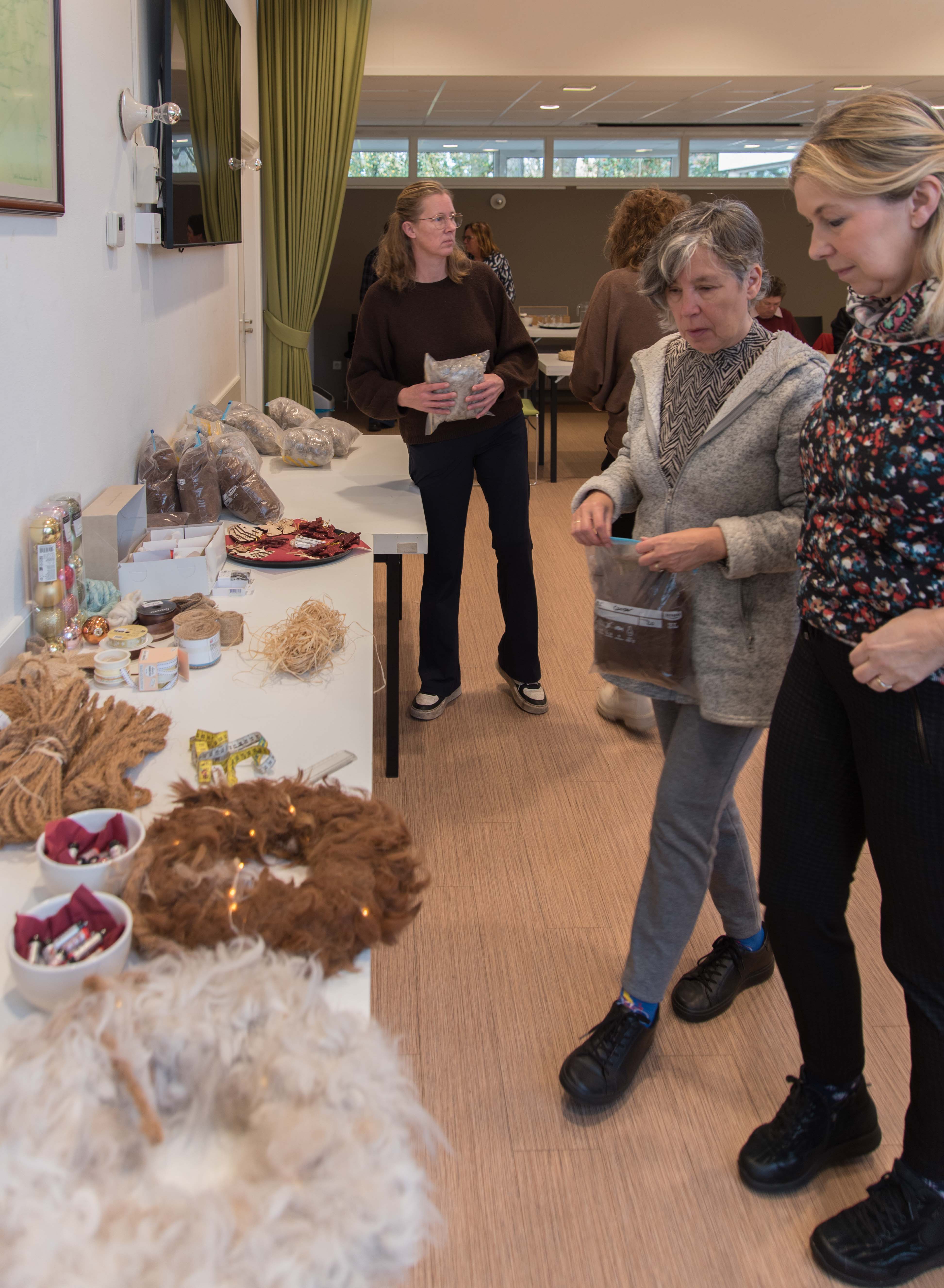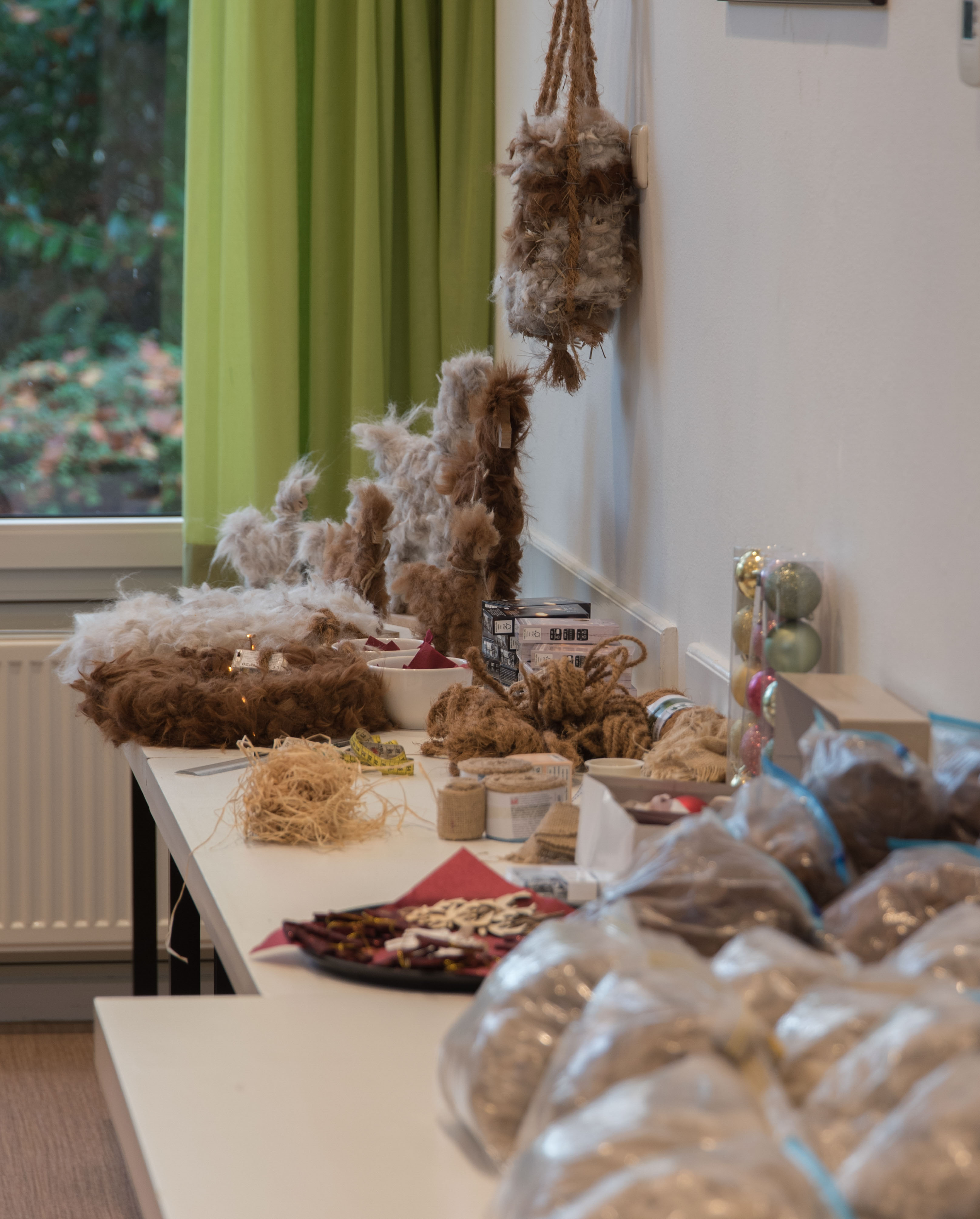 De deelnemers aan deze workshop gingen aan de slag met het maken van een krans die bekleed werd met alpacawol.